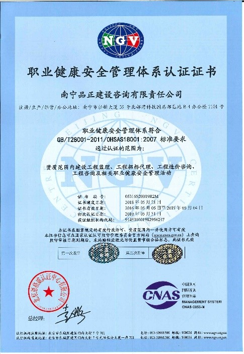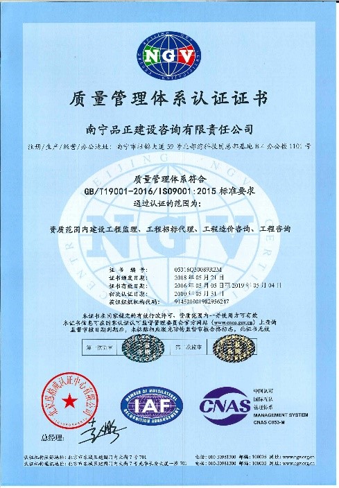 2018年5月,北京恩格威認(rèn)證中心的QES審核員到南寧品正進(jìn)行質(zhì)量管理體系、環(huán)境管理體系和職業(yè)健康安全管理體系(簡(jiǎn)稱(chēng)QHES管理)通過(guò)認(rèn)證審核工作。審核組認(rèn)為,南寧品正現(xiàn)行的QHES管理系統(tǒng)文件符合國(guó)際國(guó)內(nèi)有關(guān)強(qiáng)制性規(guī)定,適用于公司目前開(kāi)展的各項(xiàng)業(yè)務(wù)。