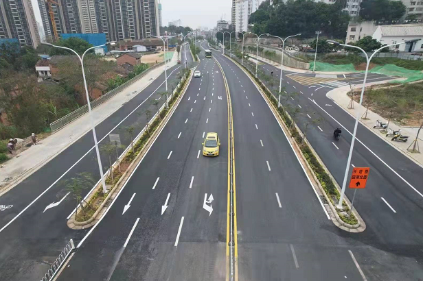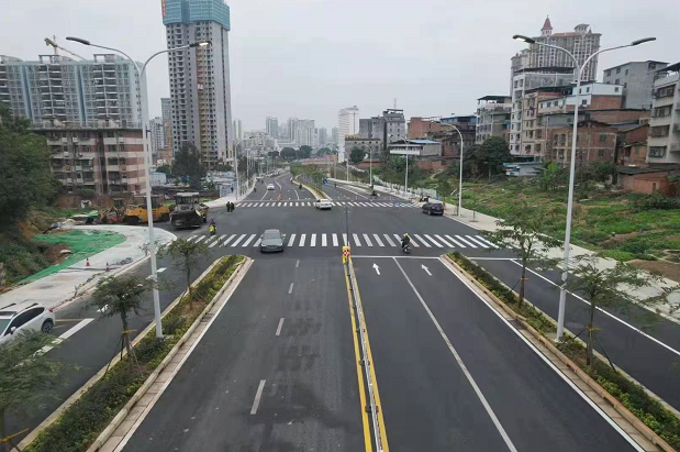 該項(xiàng)目建成通車后,進(jìn)一步拓展了城市脈絡(luò),長(zhǎng)堽路和南梧路的車輛均可通過(guò)長(zhǎng)湖路北延長(zhǎng)線實(shí)現(xiàn)互相切換,不需要再繞行廂竹大道,極大提高通行效率,并且在一定程度上緩解廂竹大道的交通壓力。同時(shí),該項(xiàng)目也極大方便東溝嶺片區(qū)市民的交通出行,促進(jìn)東溝嶺片區(qū)進(jìn)一步融入城市發(fā)展圈。